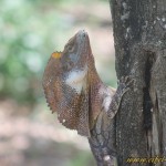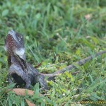 Die große Kragenechse/Frill-Necked Lizard (Chlamydosaurus kingii) ist eines der bekanntesten australischen Reptilien. Sie lebt auf Bäumen, findet ihre Nahrung aber hauptsächlich am Boden. Wie die meisten australischen Agamen läuft sie bei Gefahr auf zwei Beinen. Sie verfügt über einen aufstellbaren „Kragen“, mit dem sie Feinden und Konkurrenten droht.